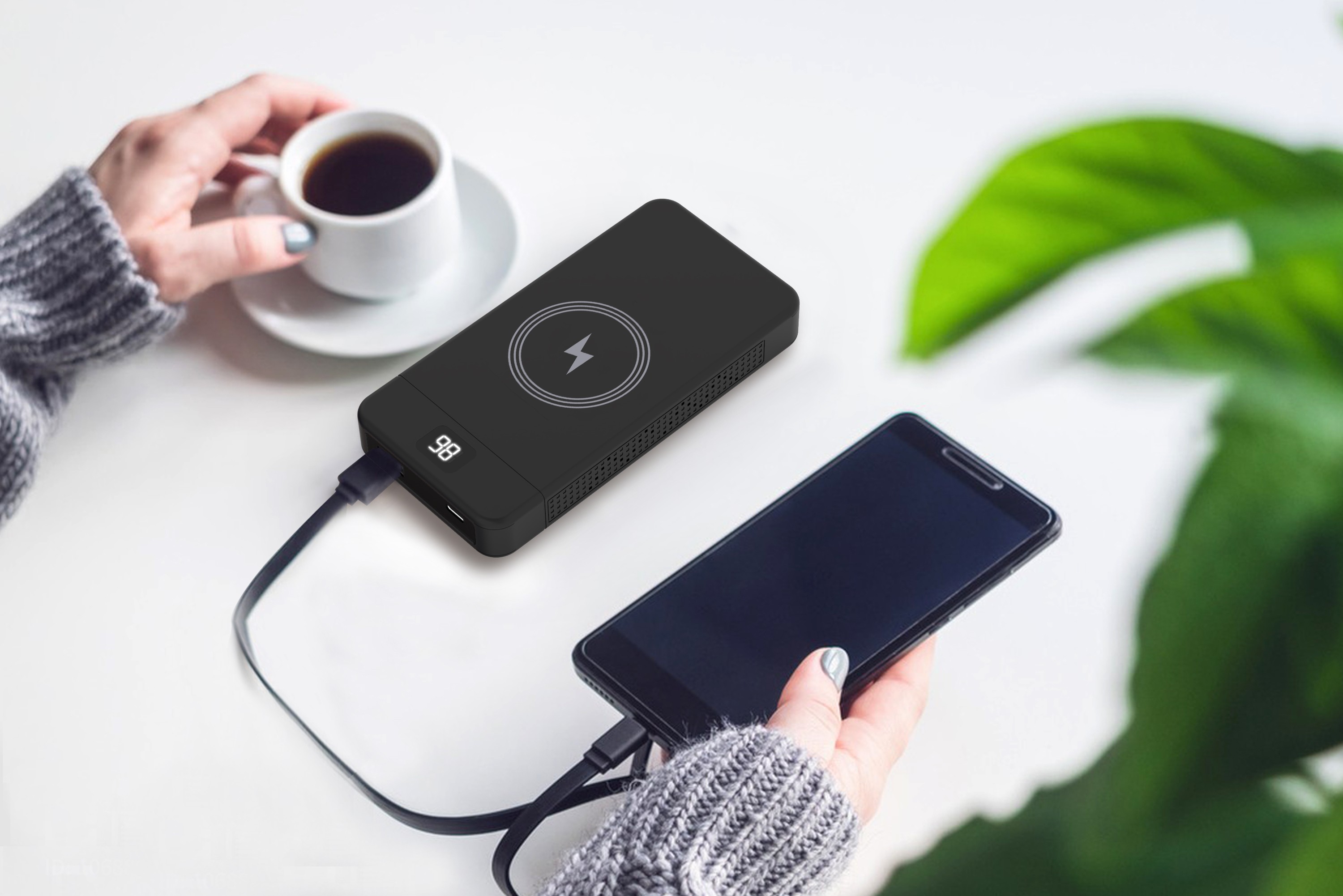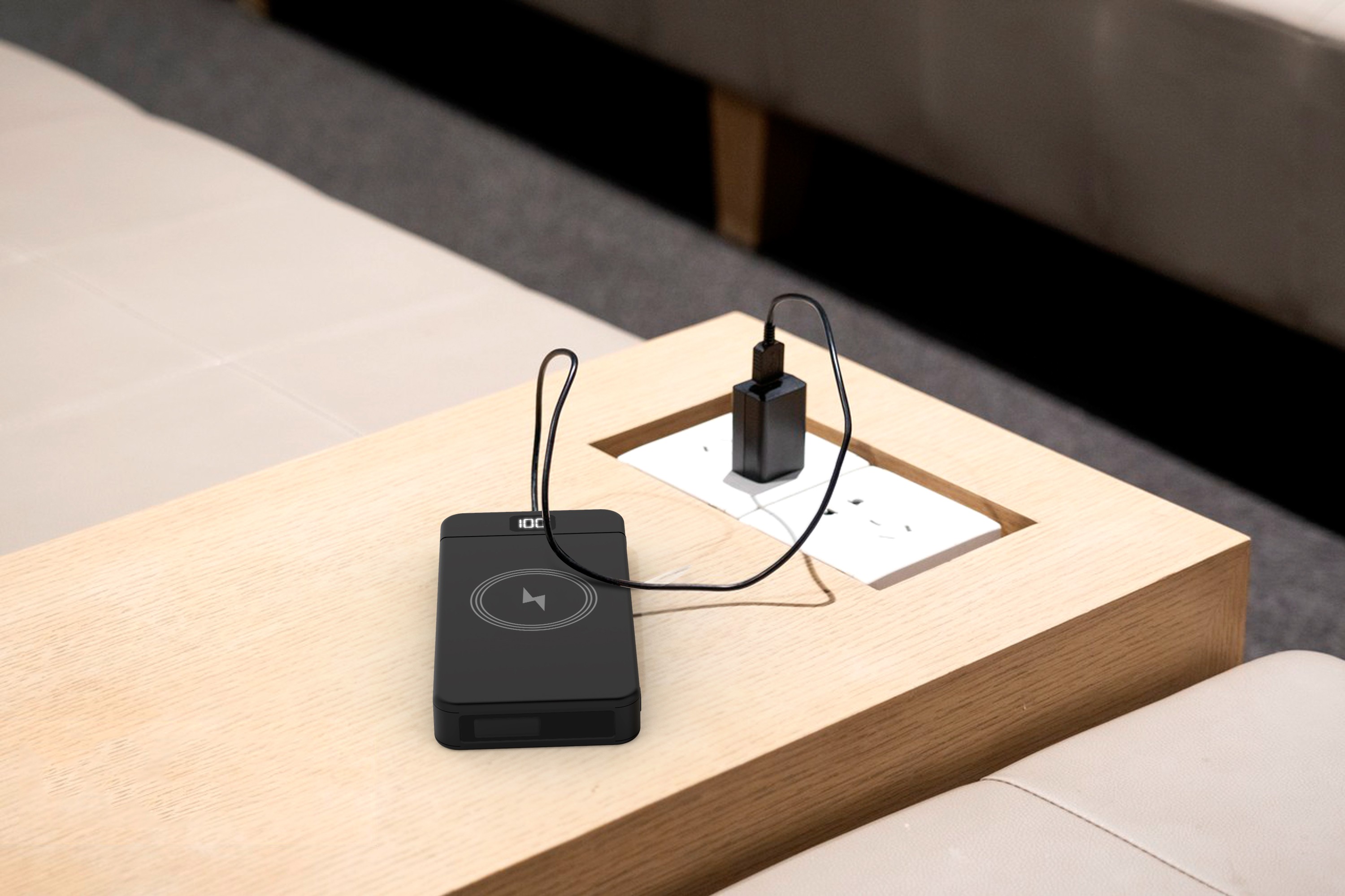 Camera hidden inside a wireless charging power bank, perfect for discreet and mobile surveillance.